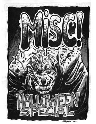 As far as the actual production, Randy kept up correspondence with about half of the people and I had the other half. After school we would read the mail we got to each other over the phone. We would get the art together, do paste ups (actually tape ups) and layout. Randy did most of that. I would do most of the actual printing. First using the printers I could get a hold of at my Mom’s or Dad’s work. After awhile we started using real printers. I remember getting together to have collating parties when we were printing 1000 copies of MISC! and those were usually quite big, from 32 - 48 pages, though our Halloween issues could get over 100 pages.