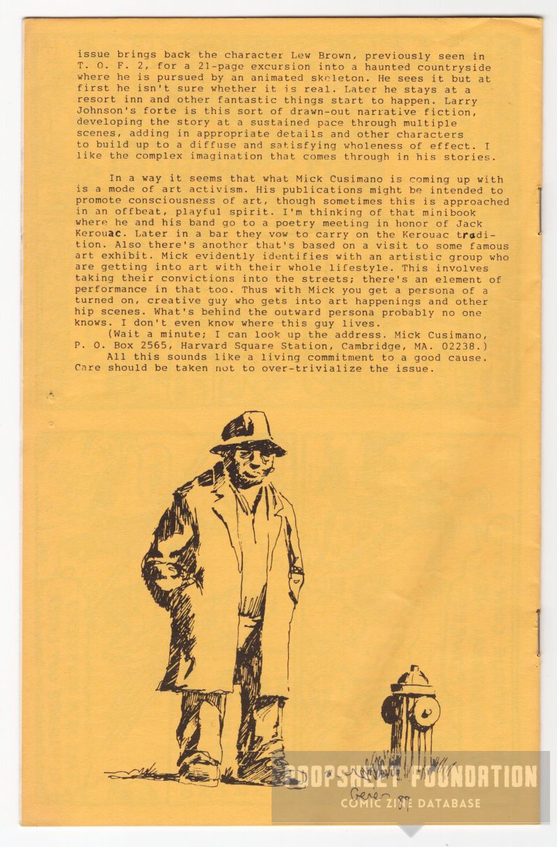 A virtual archive of mini-comics, comic fanzines, small press comics, newave comix and related items. The physical archive, housed at PF headquarters, is being built with personal acquisitions as well as generous donations from supporters. This project is most definitely a work in progress.