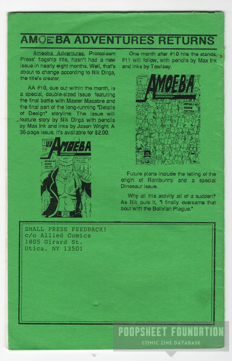 Contents include: small press news and reviews; an interview with Tim Kelly; columns by Chris Erwin and Troy Hickman; letters from Brian Dettmann, George Stasinos, Verl Holt Bond, J. Kevin Carrier, Tony Lorenz, and Tyim Courts; more.